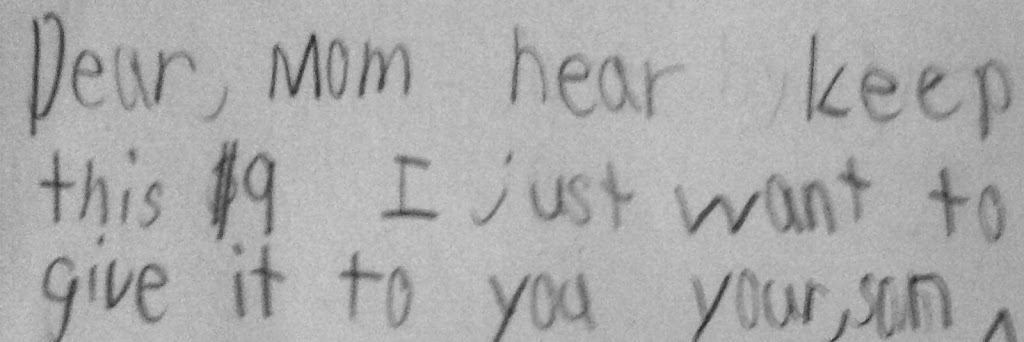 As for your little guy, I don’t think I’ve heard anything so sweet in a long, long time. The note that he left you shows a selfless, thoughtful personality.