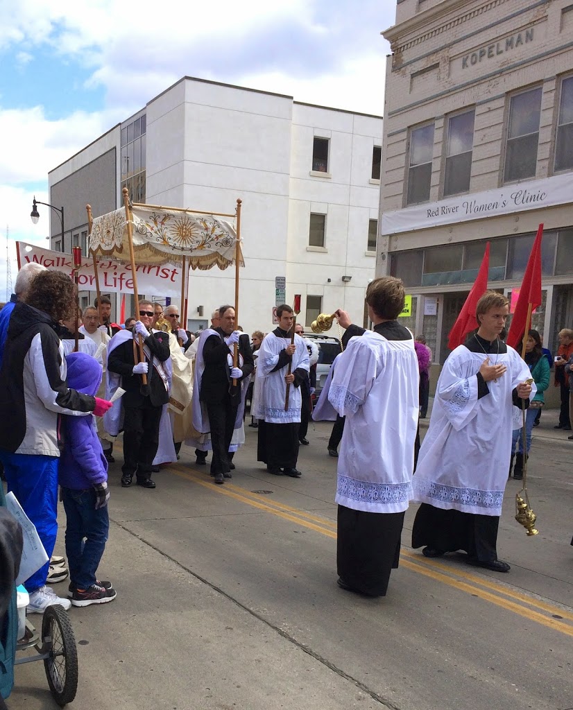 It starts at the Cathedral of St. Mary, then heads south and around to the street to the north of North Dakota’s only abortion facility.
